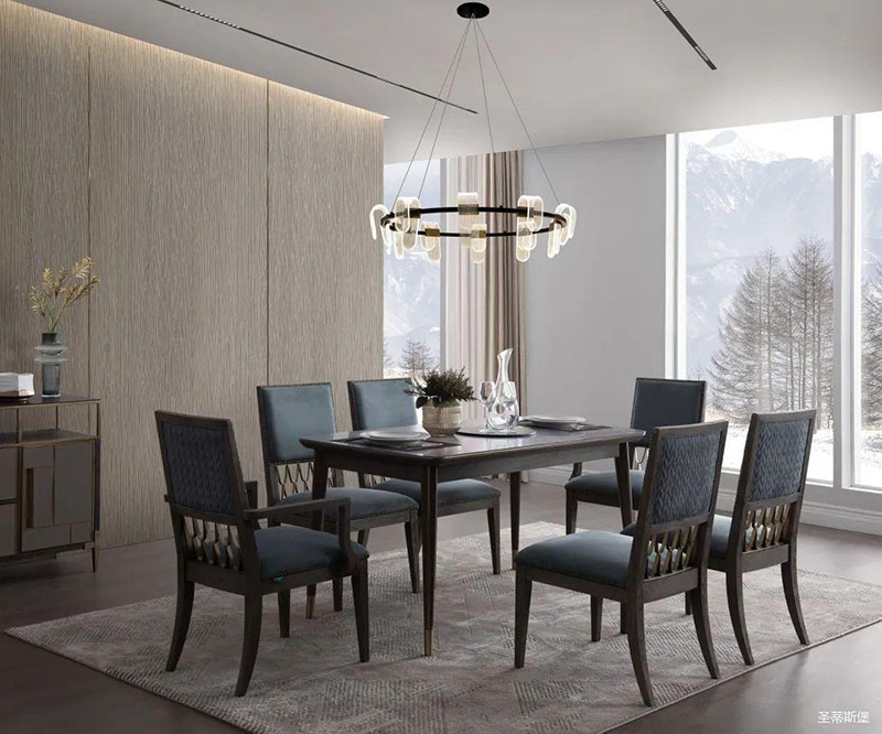 餐桌的天然材質經過時間的沉淀,散發(fā)著生生不息的自然生命力,它的紋理與質感展現著尊貴奢華的藝術氣息。“藝術的偉大意義,基于它能顯示人的真正感情,內心生活的奧秘和熱情的世界。”而這款融合自然藝術與實木雕刻工藝的餐桌,不僅表達了羅曼·羅蘭對于生活與感情的理解,也讓你在居家生活中處處體驗到生活的真諦。