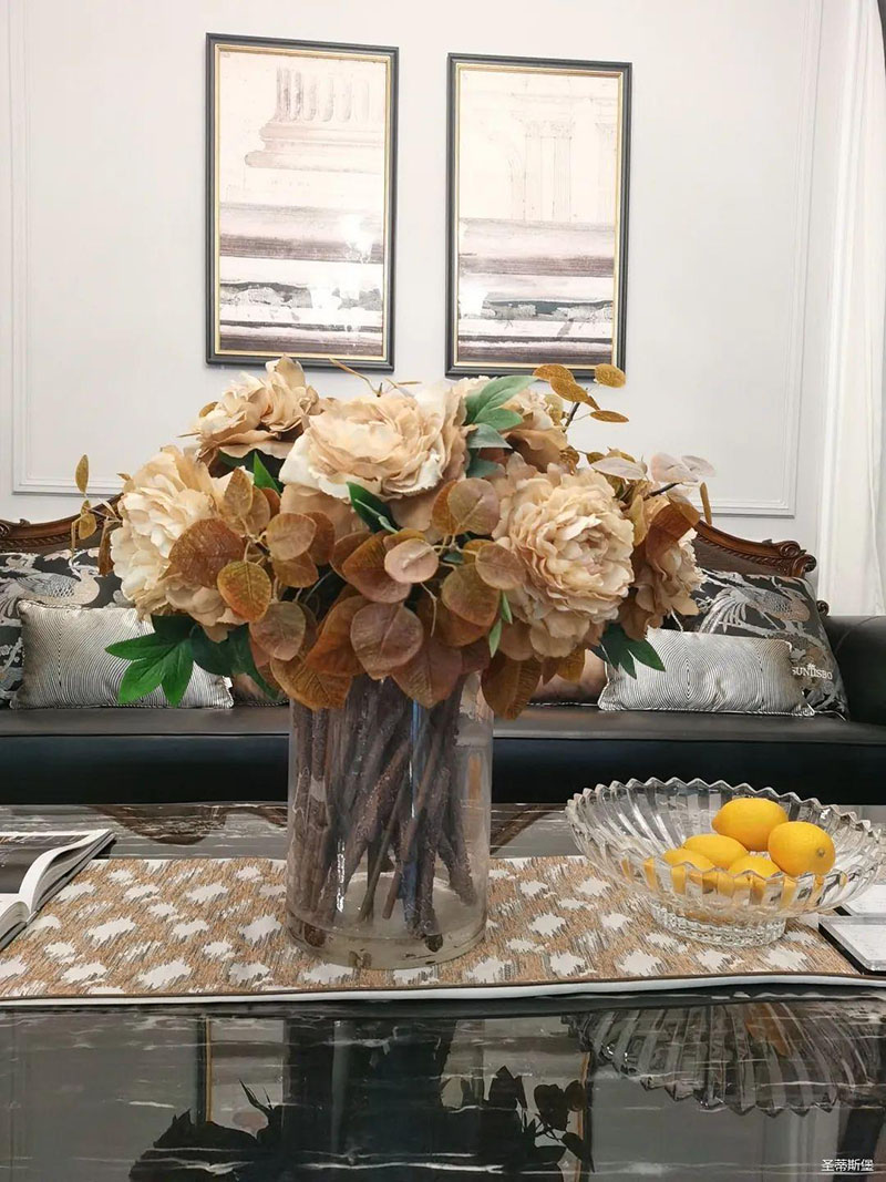 3.輕奢的配飾也需邀來似錦繁花相稱。色彩跳脫的植物更為亮眼,讓自然界的色彩與姿態(tài)應(yīng)和空間之間的協(xié)調(diào),傳遞空間與情感的共鳴。