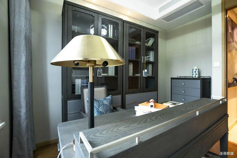 站在書房門口,都被書桌強(qiáng)大的氣場震撼,極具建筑美學(xué)的書桌四角與實(shí)木材質(zhì)質(zhì)感顯露出空間的大氣與張力,以減法設(shè)計(jì)概念,去繁求簡,卻在功能收納上絕對滿足日常所需,回歸生活本真,絕對是書房不可或缺的書桌。