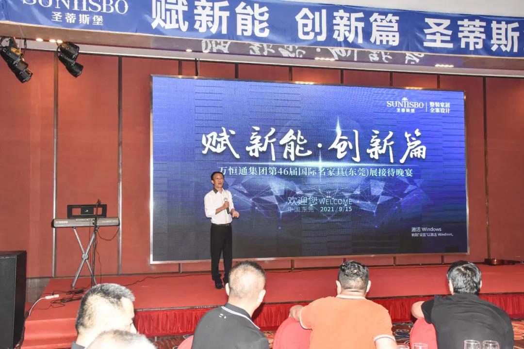 9月15日晚6時(shí)許,以“創(chuàng)新能,賦新篇”為主題的yl23455永利集團(tuán)第46屆國(guó)際家具展接待晚宴在虎門豐泰花園酒店舉行。