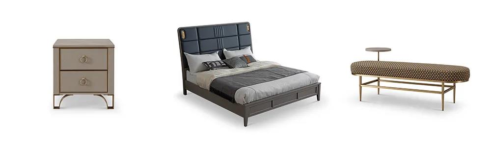 床屏?xí)r尚的霧霾藍(lán)色,與素雅的床品營(yíng)造出一種低調(diào)的簡(jiǎn)奢氛圍。金屬點(diǎn)綴著柜體拉手,床尾凳、床頭柜等微小細(xì)節(jié),讓生活充滿著內(nèi)在涵養(yǎng)與力量。