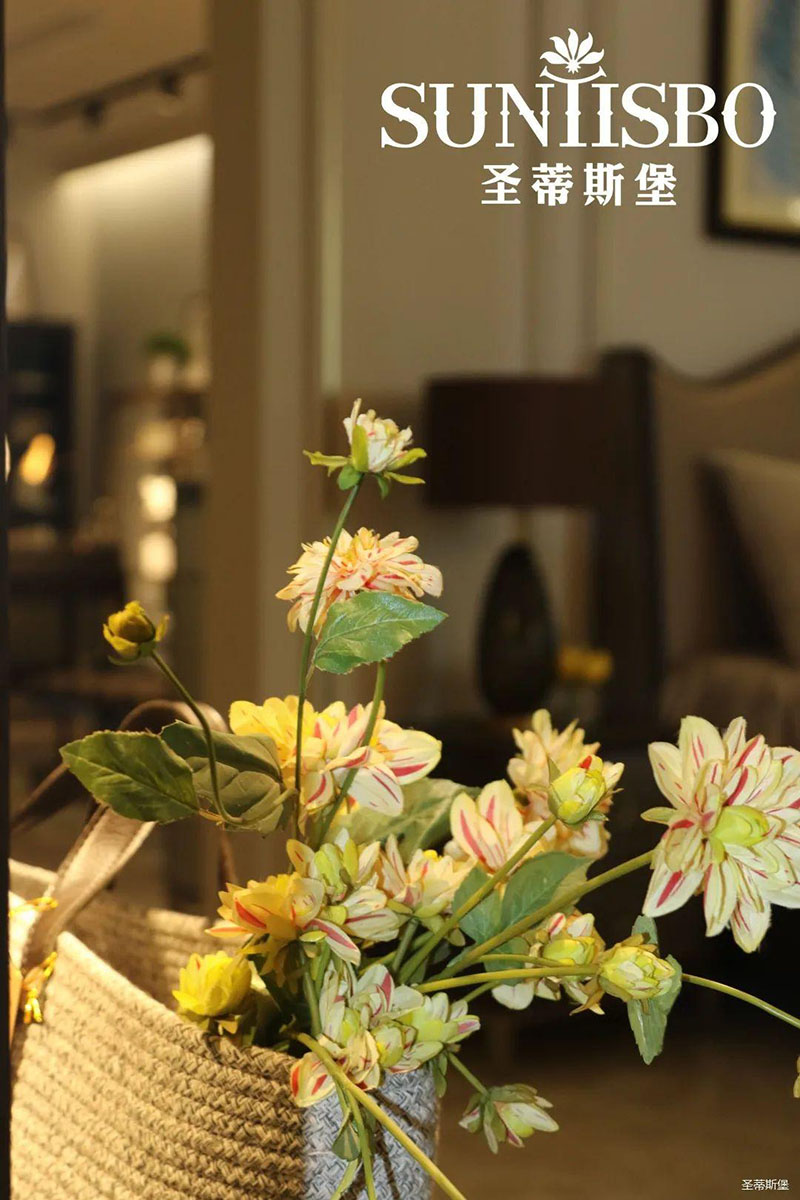 3.輕奢的配飾也需邀來似錦繁花相稱。色彩跳脫的植物更為亮眼,讓自然界的色彩與姿態(tài)應(yīng)和空間之間的協(xié)調(diào),傳遞空間與情感的共鳴。