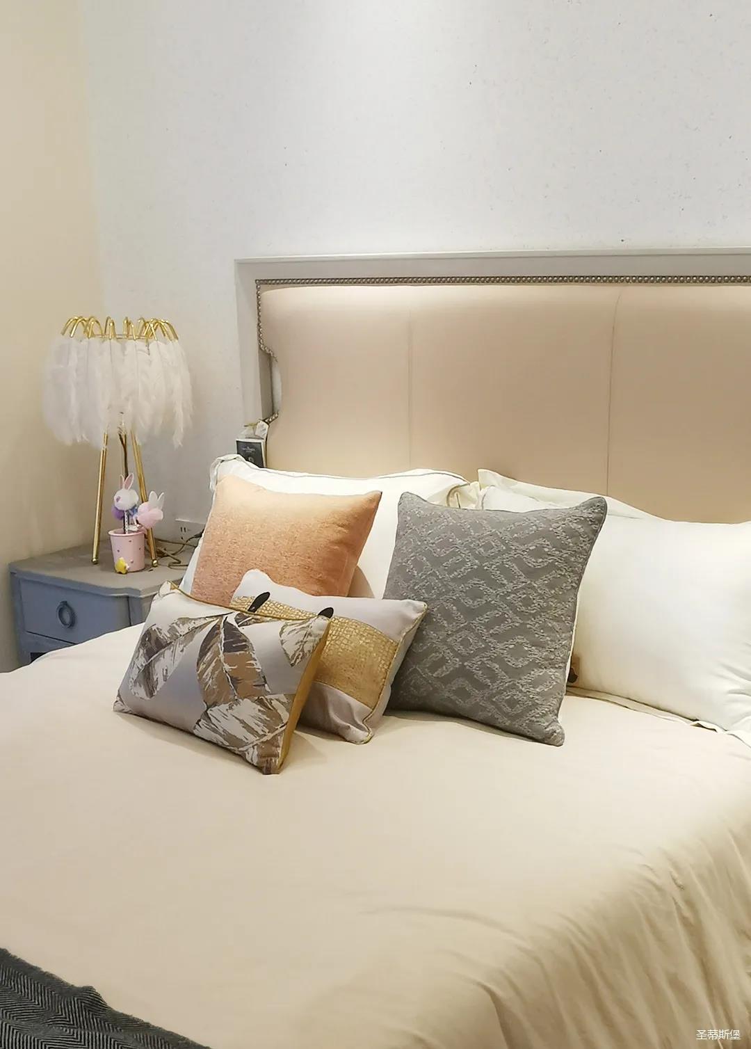 一樓的房間業(yè)主是作為長輩房,采用輕奢的背景墻面,結(jié)合亮眼的金屬線條設(shè)計(jì),空間顯得時(shí)尚又不失沉穩(wěn)。莫蘭迪色的淺藍(lán)床屏,在無主燈設(shè)計(jì)與自然光線的碰撞下醞釀出不同的光影美感。