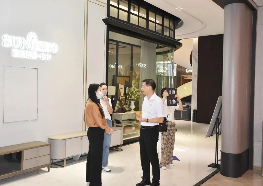 展會(huì)期間,全國(guó)家居建材連鎖巨頭—紅星美凱龍集團(tuán)鄭總一行蒞臨圣蒂斯堡營(yíng)銷中心進(jìn)行參觀交流。集團(tuán)領(lǐng)導(dǎo)熱情接待,雙方進(jìn)行了深度洽談,并一起參觀了洛斯、里奧、洛卡等展廳。